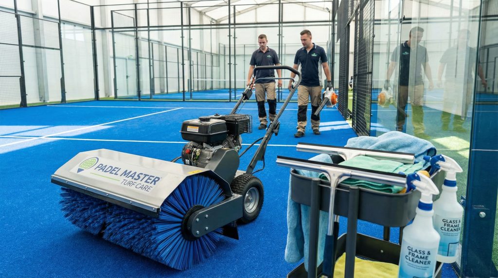 Maintaining a padel court involves regular brushing of the synthetic turf to keep the sand infill level and prevent fibers from matting. You must also clean the glass walls weekly to maintain the “premium” look and visibility players expect. Here is why: neglected turf becomes slippery and dangerous, while dirty glass ruins the spectator experience.