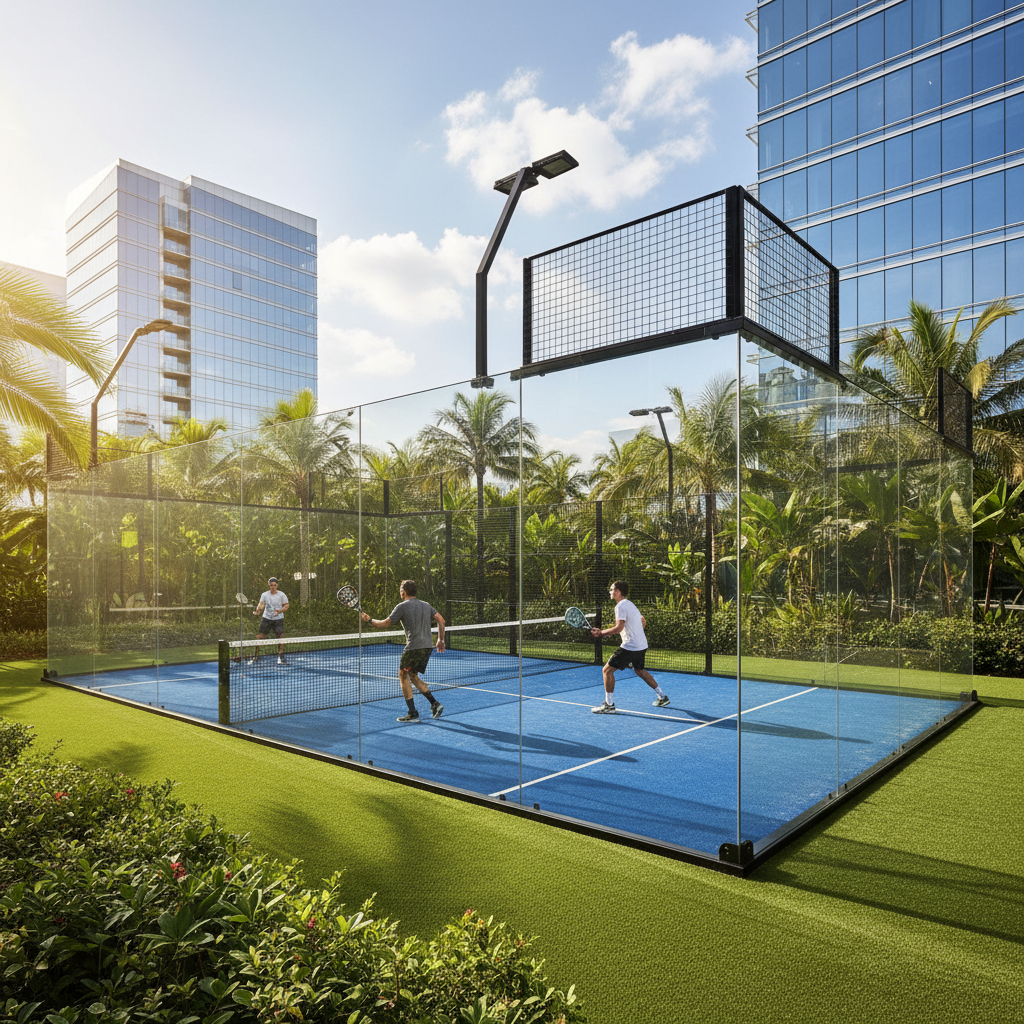 A paddel court is an enclosed rectangular playing surface measuring 10 meters by 20 meters, surrounded by glass walls and metal mesh, where you play doubles tennis with walls. Building one requires specialized artificial turf, tempered glass panels, hot-dip galvanized steel framing, LED lighting, and a properly engineered foundation with drainage—typically taking 4-6 weeks from site preparation to final installation.