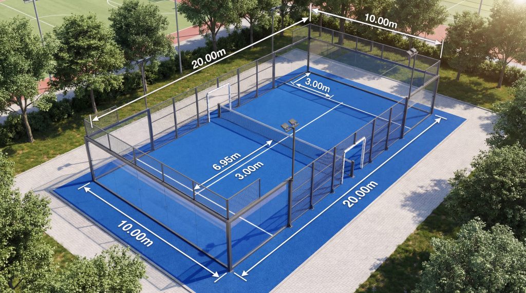 padel court design involves creating a 200-square-meter footprint enclosed by glass and mesh, constructed by anchoring a modular metallic framework onto a leveled concrete base. You must ensure the structure is robust enough to handle player impacts and environmental stressors like wind or moisture.