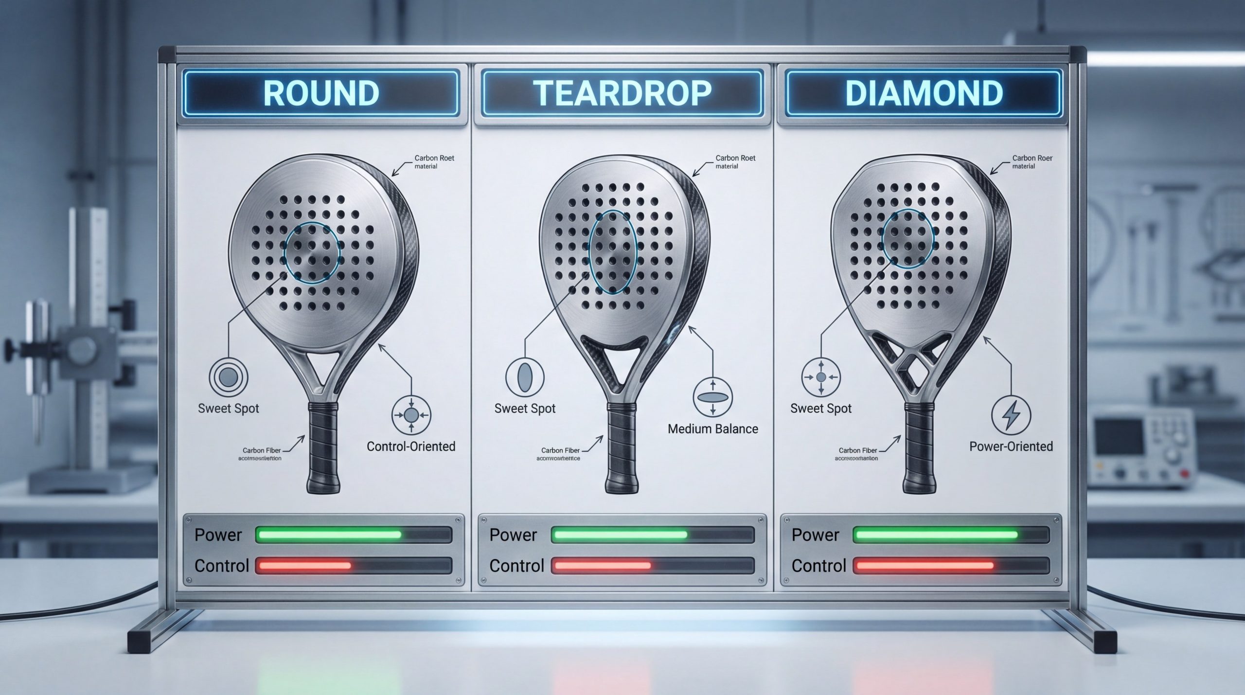You choose the right racket shape by selecting a round geometry, as this design places the sweet spot in the center of the face and keeps the weight balanced toward the handle. While you may see professional players using diamond-shaped models for explosive power, these are difficult for starters to handle. A round shape provides the most stable platform for learning the fundamentals of the sport.