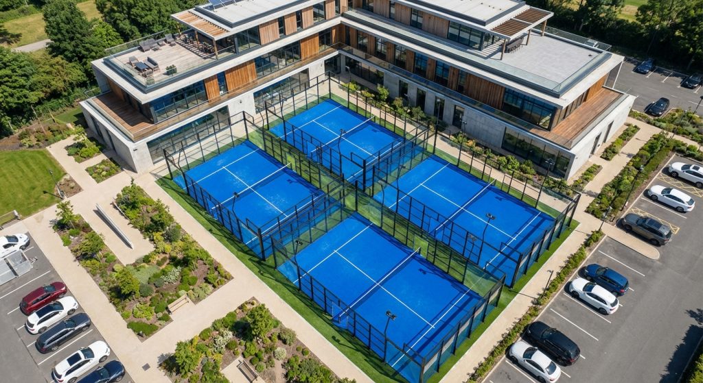 Panoramic designs replace structural pillars with thick glass joints to provide a 360-degree view of the action. High-end padel tennis court construction often utilizes this “frameless” look to attract premium members and television broadcasters.