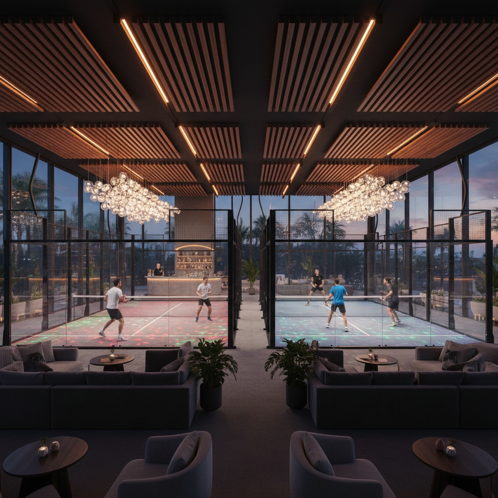 Color customization has moved beyond traditional green, with blue becoming the industry standard for television visibility, and black or red turf emerging in premium clubs. Lighting design has also advanced, with linear LED systems replacing bulky floodlights to reduce glare and improve broadcast quality. These design shifts aim to create an immersive experience that attracts premium clientele and supports tournament hosting. Here’s the deal: investing in panoramic designs often yields higher court rental rates.