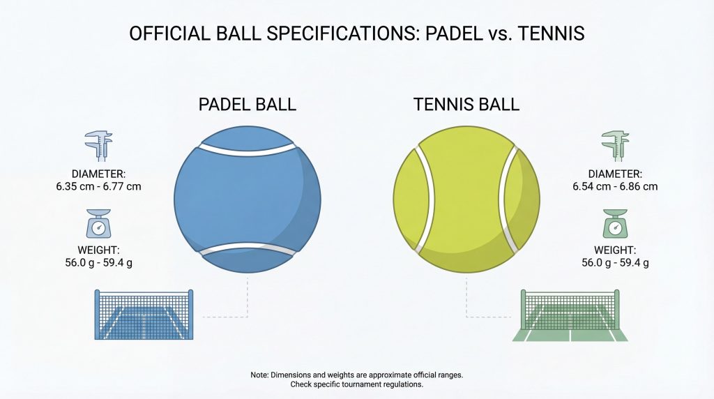 Key Takeaway: While physical weights are similar, the aerodynamic profile makes the padel ball feel more substantial during play.