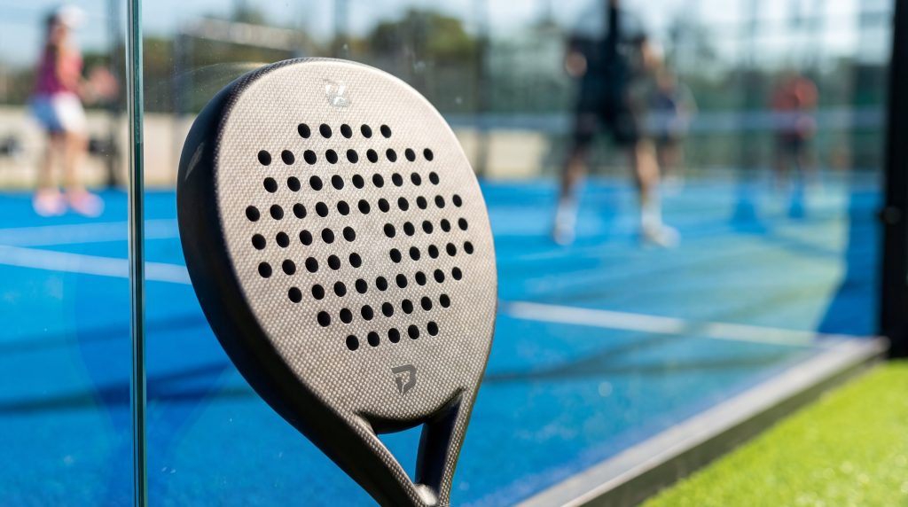 A modern raqueta de padel is defined by its stringless, perforated hitting surface and a maximum thickness of 38 millimeters.