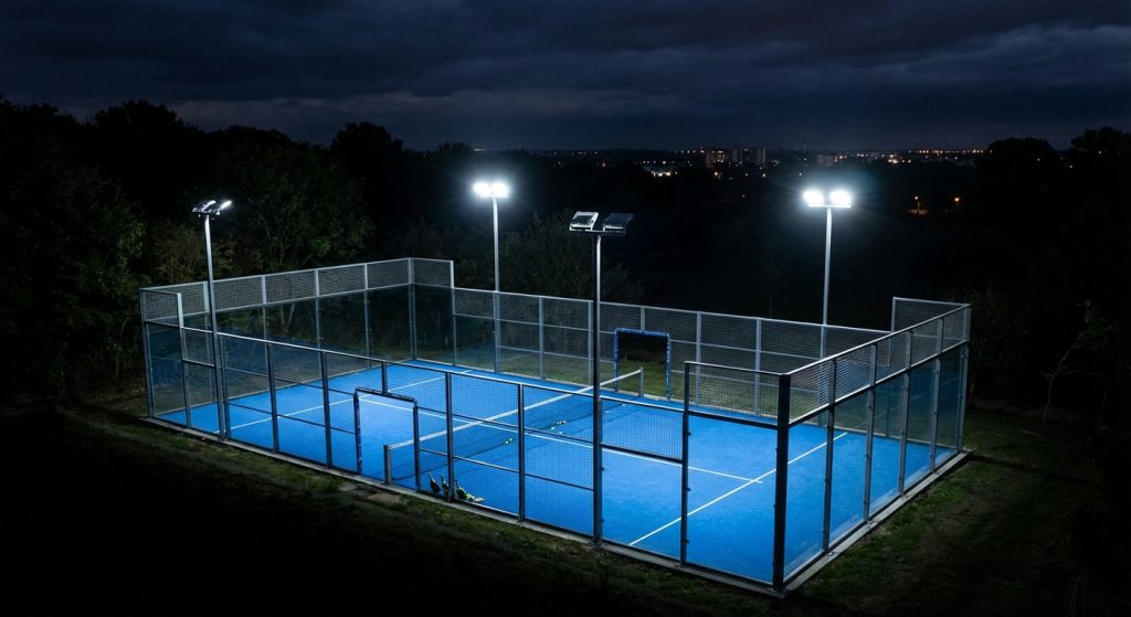 Installing 4 to 8 LED floodlights on 6-meter poles is essential if you want to maximize evening rental revenue. High-quality LEDs minimize glare, which is critical for players looking up to track lobs.