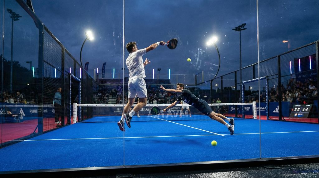 padel tenis is a racket sport played in doubles on an enclosed court that is approximately 25% smaller than a standard tennis court. The game utilizes the surrounding glass walls, allowing the ball to be played off them to keep rallies going longer. This unique dynamic creates a low-entry barrier for beginners while offering deep strategic complexity for advanced players.