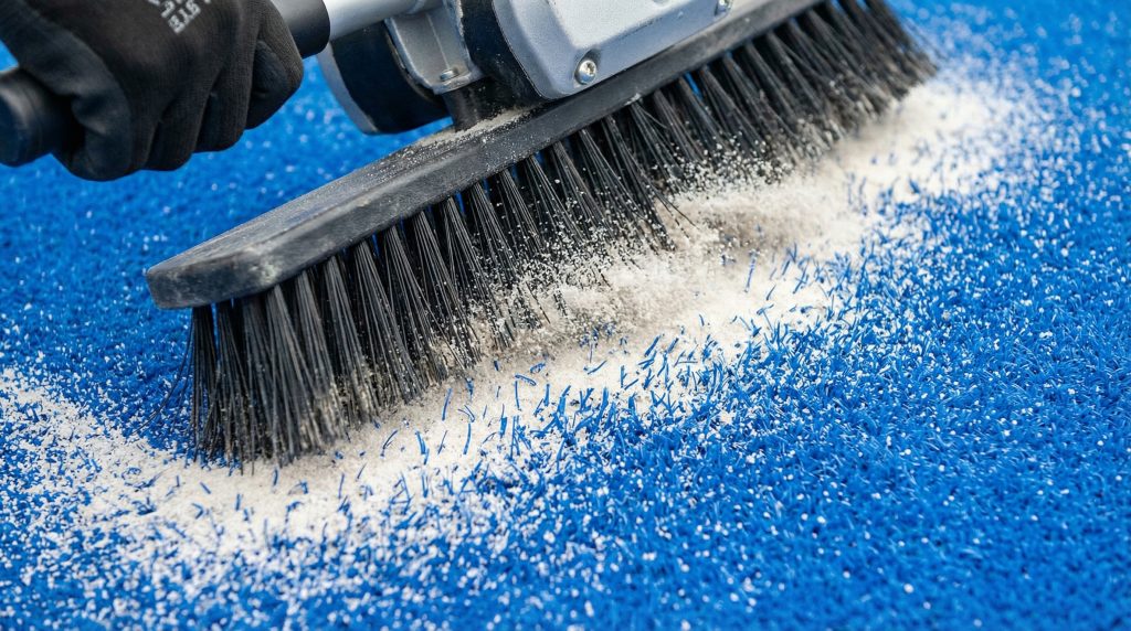 - Weekly turf brushing to redistribute sand.